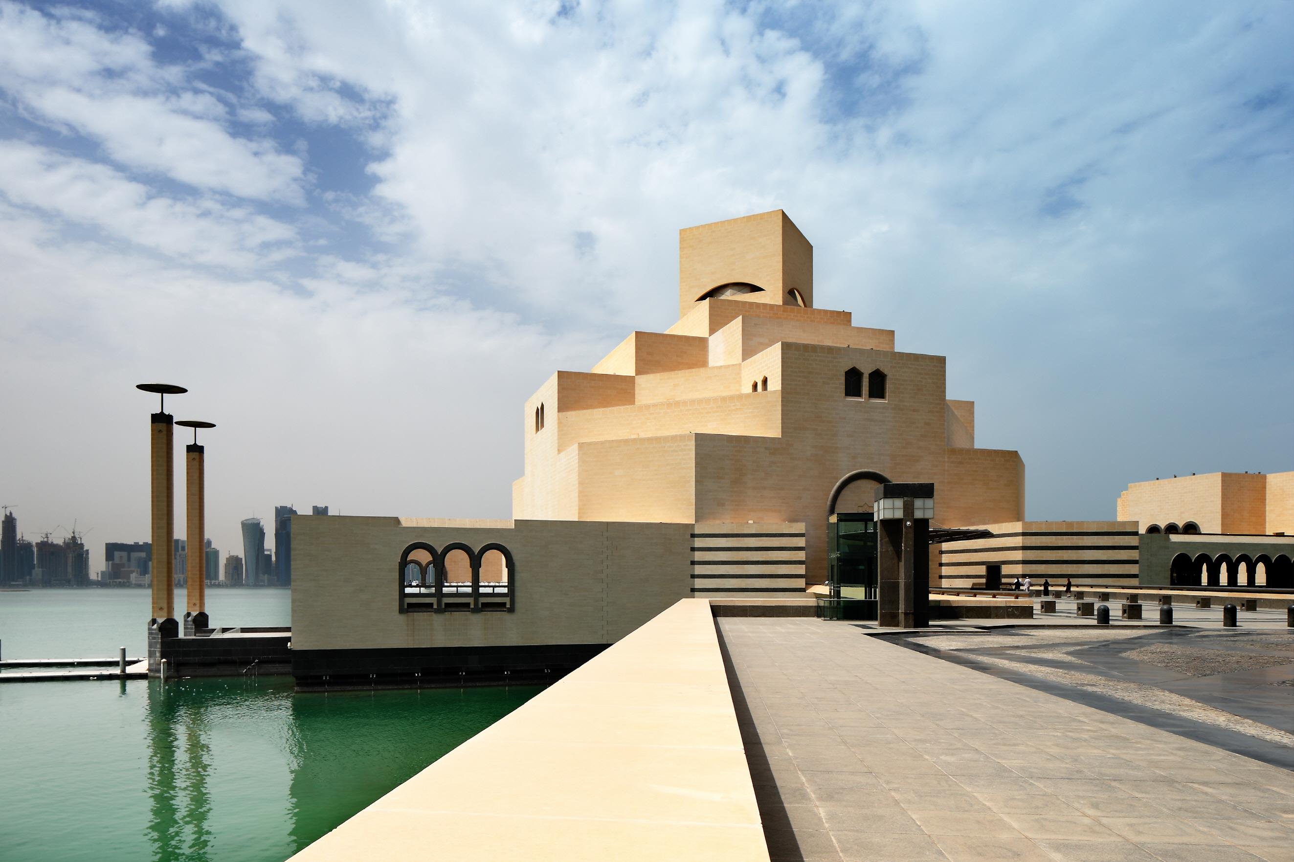 À̽½¶÷ ¹Ì¼ú ¹Ú¹°°üÀº īŸ¸£ ¼öµµ ÀÎ µµÇÏ (Doha)¿¡ ÀÖ´Â 7km ±æÀÌÀÇ ÄÚ ´ÏÅ© ³× (Corniche)ÀÇ ÇÑÂÊ ³¡¿¡ À§Ä¡ÇÑ ¹Ú¹°°üÀ¸·Î ÀÌ °Ç¹°À» ¼³°èÇÑ °ÇÃà°¡´Â ÀÌ¿À ¹Ö ÆäÀÌ(Ieoh Ming Pei, I.M.Pei)·Î °ÇÃà°è ÃÖ°íÀÇ ¿µ¿¹¶ó´Â ÇÁ¸®Ã÷Ä¿»óÀ» 1983³â ¼ö»óÀ» ÇÏ¿´À¸¸ç ÈçÈ÷ ¸ð´õ´ÏÁò °ÇÃàÀÇ ¸¶Áö¸· ÁÖÀÚ¶ó´Â Æò°¡¸¦ ¹Þ´Â °ÇÃà°¡ÀÔ´Ï´Ù. ¹Ú¹°°üÀº ÀüÅëÀûÀÎ µµ¿ì (¸ñÁ¶ īŸ¸£ º¸Æ®) Ç×±¸ ±ÙóÀÇ Àΰø Åõ¿µ ¹Ýµµ¿¡¼ ¶³¾îÁø ¼¶¿¡ Áö¾îÁ³½À´Ï´Ù. µÎ °³ÀÇ ´Ù¸®°¡ °Ç¹°ÀÇ ³²ÂÊ Á¤¸é °ø¿øÀ» º¸À¯ÇϰíÀÖ´Â ÁÖ¿ä ¹Ýµµ¿Í ¿¬°áÇÏ´Â ¹Ý¸é, ¸ñÀû¿¡ ¸Â°Ô ¼³°èµÈ °ø¿øÀº µ¿ / ³²ºÎ Á¤¸éÀÇ °Ç¹°À» µÑ·¯½Î°í ÀÖ½À´Ï´Ù. ¼¾ç°ú ºÏºÎÀÇ Á¤¸é¿¡´Â °ú°Å īŸ¸£ Ç×ÇØ¸¦ º¸¿©ÁÖ´Â Ç×±¸°¡ Ç¥½ÃµÇ¾î ÀÖÀ¸¸ç, MIA (Museum of Islamic Art)´Â ¾à 1400³â¿¡ °ÉÃÄ 3 ´ë·úÀÇ À̽½¶÷ ¿¹¼úÀ» ´ëÇ¥ ÇÕ´Ï´Ù.