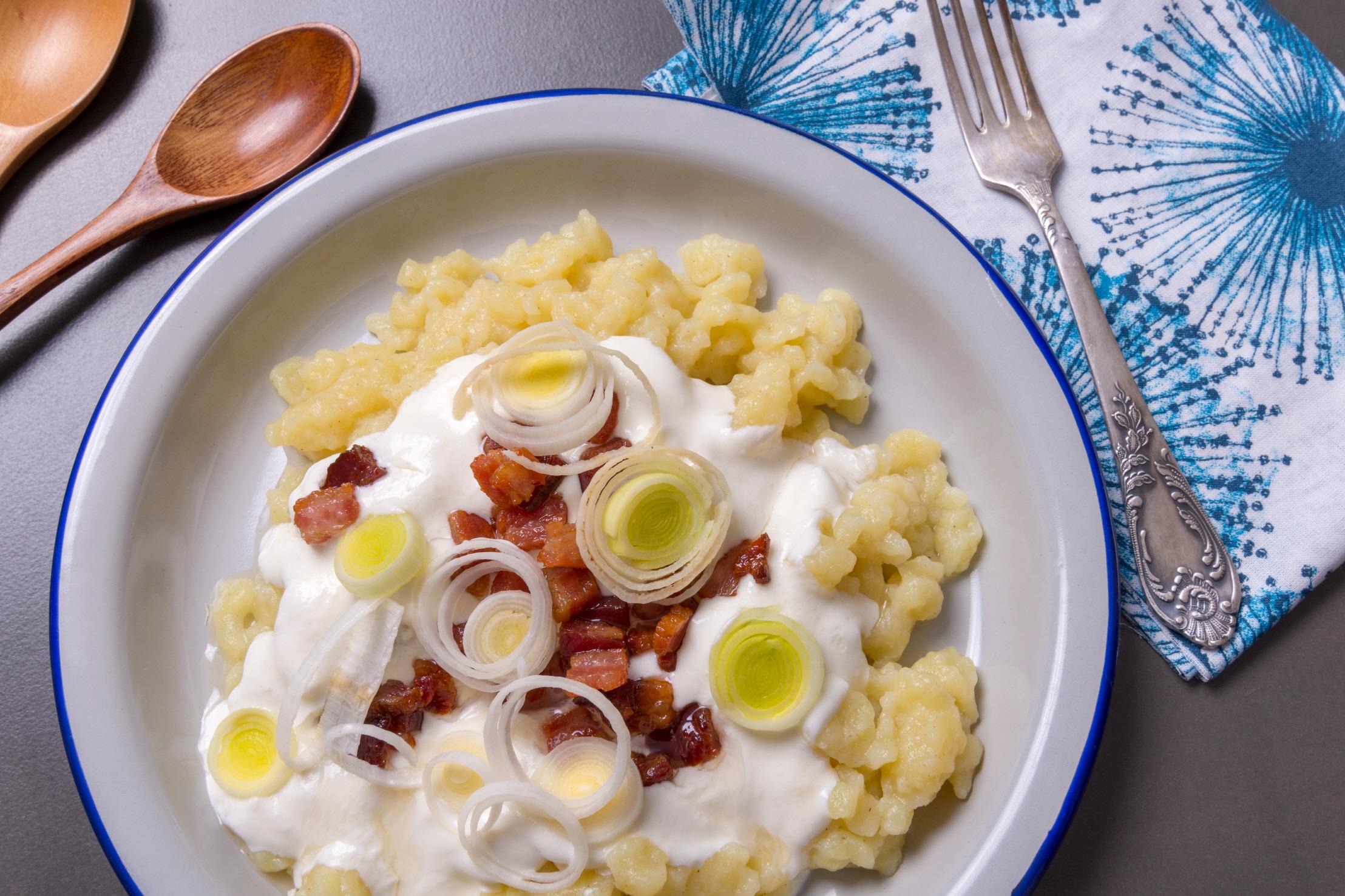 ½½·Î¹ÙŰ¾Æ¿¡¼ À¯·¡µÈ À½½ÄÀ¸·Î ÀüÅë ½½·Î¹ÙŰ¾Æ ¾çÁ¥ Ä¡Áî ºê¸°ÀÚ(bryndza)¸¦ ³Ö°í °è¶õ°ú ¹Ð°¡·ç¿Í °¨ÀÚ°¡·ç ¹ÝÁ× ÆÄ½ºÅ¸, Çãºê, ±¸¿îº£ÀÌÄÁ, ¹öÅÍ, ¾çÆÄ, ÀýÀξç¹èÃß µîÀ» »ç¿ëÇÏ¿© Á¶¸®ÇÕ´Ï´Ù. ½½·Î¹ÙŰ¾Æ¿¡¼´Â 'ºê¸°Á¶º£ Çҷ罴Ű(bryndzové halušky)'¶ó°íÇϸç üÄÚ,½½·Î¹ÙŰ¾Æ,µ¿À¯·´±Ç¿¡¼ ¸¹ÀÌ ¸Ô½À´Ï´Ù.
