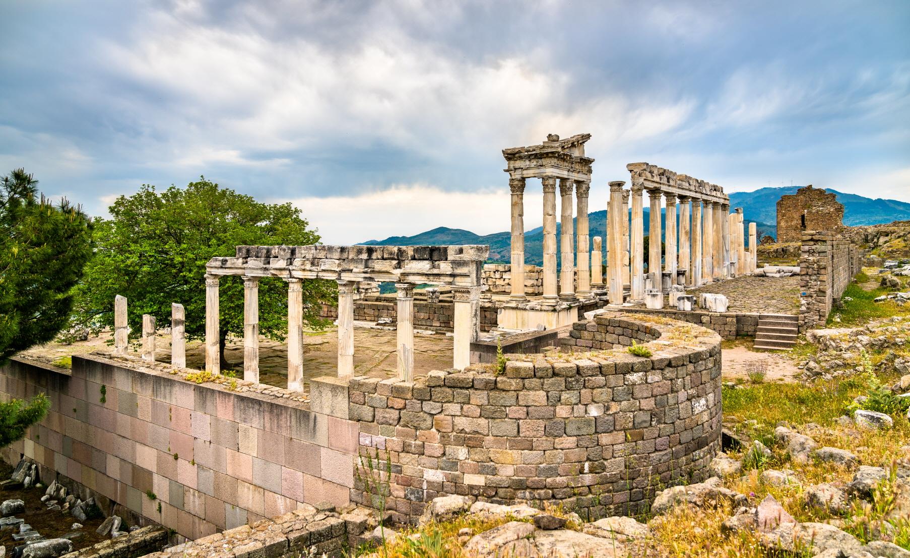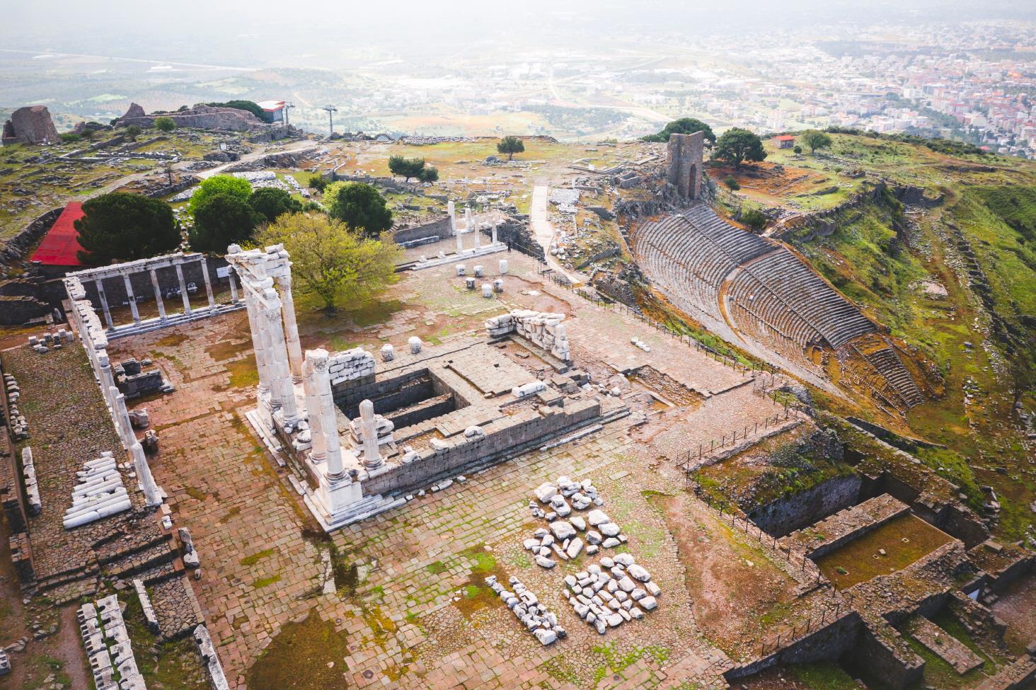 ¹ö°¡¸ð´Â ¼Ò¾Æ½Ã¾Æ Áö¿ªÀÇ ¼öµµ·Î ¾ÆÅ©·ÎÆú¸®½º(¿Õ±¹)¾È¿¡´Â ¿©·¯°³ÀÇ ½ÅÀü(Á¦¿ì½º, µð¿À´Ï¼Ò½º µî)°ú ÇÔ²² Æ®¶óÀÜ ·Î¸¶ ȲÁ¦ ½ÅÀüÀÌ ÀÖ¾ú½À´Ï´Ù. °¡ÀÌ»ç ¾Æ¿ì±¸½ºÅõ½º(·Î¸¶¸íÀº ¿ÁŸºñ¾È) ȲÁ¦¸¦ ½Å°ÝÈÇϱâ À§Çؼ ÁÖÈÄ 30-40³â »çÀÌ¿¡ ¾Æ½Ã¾Æ Áö¿ª¿¡¼ óÀ½À¸·Î ¼¼¿öÁ³À¸¸ç, Æ®¶óÀÜ È²Á¦ÀÇ ½ÅÀüÀº ÁÖÈÄ 98³â¿¡¼ 117³â »çÀÌ¿¡ °ÇÃàµÇ¾ú°í, ¼¼º£Åõ½º ȲÁ¦¸¦ ¼þ¹èÇϱâ À§Çؼ ÁÖÈÄ 193-211³â »çÀÌ¿¡ °ÇÃàÀÌ µÇ¾îÁ³½À´Ï´Ù. Çϵ帮¾È ȲÁ¦ ¶§ ¿Ï°øÇÑ ÀÌ ½ÅÀüÀº ÁöÇü»ó ±ï¾ÆÁø VÀÚ ÇüÀÇ Àýº®»çÀÌ¿¡ °ÉÃÄ Áþ°Ô µÇ¾úÀ¸¸ç, ÁöÇüÀ» ÆòÆòÈ÷ °í¸£±â À§ÇØ ½ÅÀü ¾ÕºÎºÐ¿¡ Ãà´ë¸¦ ½×À» ¼ö ¹Û¿¡ ¾ø¾ú½À´Ï´Ù. ÁÖÀ§ÀÇ ´Ù¸¥ °ÇÃ๰µéÀÌ È¸»öÀ̳ª ºÐÈ«ÀÇ ´ë¸®¼®À» »ç¿ëÇÑ ¹Ý¸é ÀÌ ½ÅÀüÀº ¼±¸íÇÑ Èò ´ë¸®¼®À» »ç¿ëÇÔÀ¸·Î½á »ê ¹ØÀÇ Æò¿ø¿¡¼µµ È®¿¬ÇÏ°Ô µå·¯³ª º¸À̸ç, ½ÅÀüÀÇ 3¸éÀº ¸ðµÎ ±âµÕÀ¸·Î µÑ·¯½Ñ ȶûÀÌ ÀÖ°í ½ÅÀüÀÇ ¾ÈÂÊ ¸¶´ç¿¡´Â Á¦´ÜÀÌ ¼¼¿öÁ® ÀÖÀ¸¸ç, Á¦´ÜÀÇ ¾çÂÊ ³¡¿¡´Â ȲÁ¦ÀÇ Á¶°¢À» ¼¼¿ö ³õ¾ÒÀ¸³ª ¿À´Ã³¯¿¡´Â ±× ¸ð½ÀÀÌ ³²¾ÆÀÖÁö ¾Ê½À´Ï´Ù.