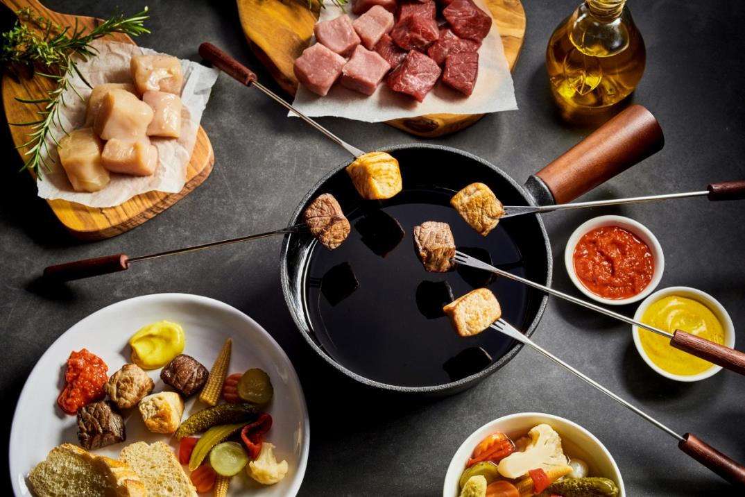 ½ºÀ§½ºÀÇ ¹ÌÆ®Æþµà(Fondue Bourguignonne)´Â ÀüÅëÀûÀÎ Ä¡Áî Æþµà¿Í ´Ù¸¥, °í±â¸¦ ±â¸§¿¡ Æ¢°Ü ¸Ô´Â ¿ä¸®ÀÔ´Ï´Ù. ÀÌ ¿ä¸®´Â ƯÈ÷ Ä£±¸³ª °¡Á·°úÀÇ ¸ðÀÓ¿¡¼ »ç¶û¹Þ´Âµ¥, °¢ÀÚ °í±â Á¶°¢À» ±ä Æ÷Å©¿¡ ²È¾Æ ¶ß°Ì°Ô ´Þ±º ±â¸§¿¡ Æ¢°Ü ÀÚ½ÅÀÌ ¼±È£ÇÏ´Â Á¤µµ±îÁö ÀÍÇô ¸Ô½À´Ï´Ù. ´Ù¾çÇÑ Á¾·ùÀÇ °í±â¿Í ÇÔ²², ¿©·¯ °¡Áö ¼Ò½º¿Í ¸¶¸®³×À̵带 »ç¿ëÇÏ¿© ¸ÀÀ» ´õÇÕ´Ï´Ù.